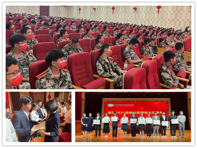 随后,学院院长吴志亚和党总支副书记赵斌为新生助理班主任颁发了聘书。最后,赵斌副书记作军训动员,他鼓励当代青年学生要把立德树人融入实践,促进自强魂与强国魂相互融合,铸就不悔青春,用最切实的行动向时代交出一份合格的答卷。