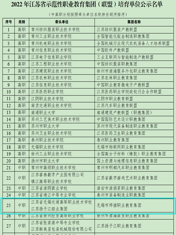【喜报】无锡市焊接职教集团入选江苏省示范性职业教育集团(联盟)培育单位