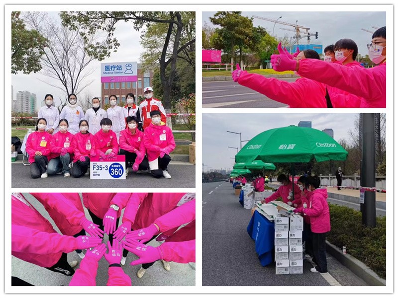 船舶工程学院的学生志愿者们在经过系统培训后,全程为参赛选手提供引导、补给、寄存、赛道维持等服务,在赛道两旁为选手们加油呐喊,以微笑开启锡马的赛程、以热情点燃锡马的火焰,圆满完成无锡马拉松志愿服务。