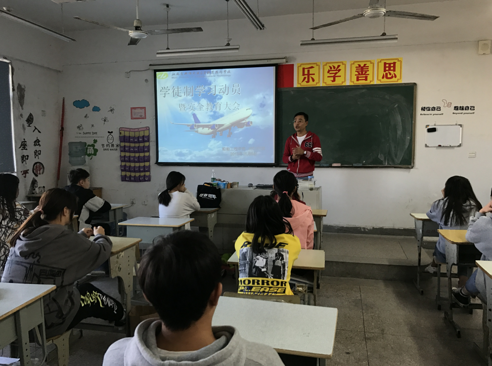 11月5日,船舶工程学院182152班航空服务专业学生将前往无锡太悦度假酒店管理有限公司进行学徒制学习。船舶工程学院党总支书记吴志亚和实习指导老师孙炎给同学们做了实习前动员及安全教育。