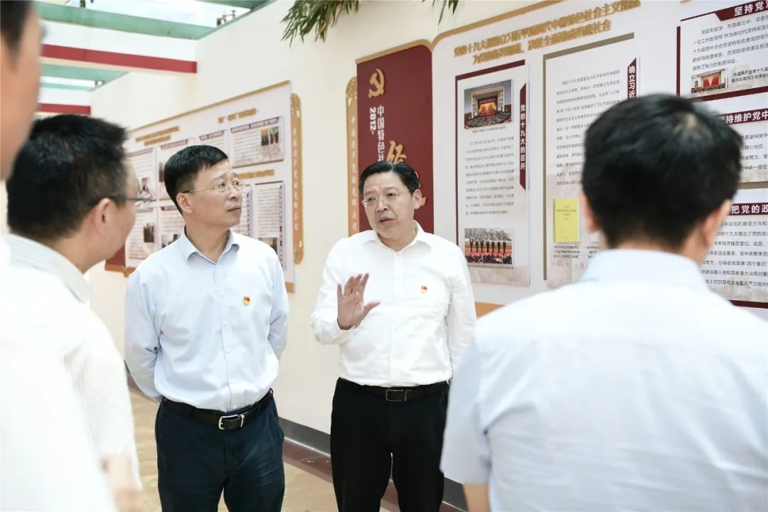 学校党委副书记、纪委书记朱雨兰作情况汇报。她提出,中国共产党光辉历程展是学校在江苏省交通运输厅机关党委、省委党校和无锡市档案史志馆专家的指导下,对原有的党建文化长廊内容进行更新,因地制宜制作而成,展示中国共产党光辉历程和十九届五中全会精神。红船模型是学校委托嘉兴南湖红船指定维修单位制作而成,展示了红船精神。十三五成果展全面展示了十三五期间,学校教育改革事业发展成果。