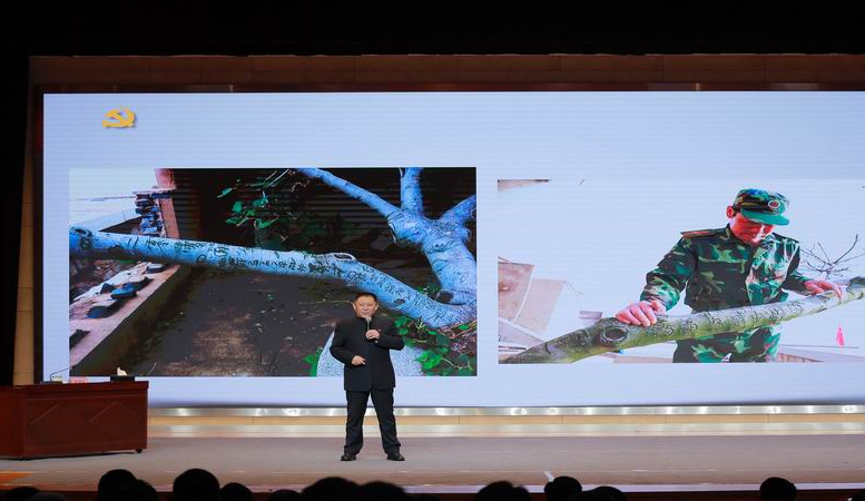 会议第一阶段,学校邀请了光明日报社江苏记者站站长郑晋鸣教授就 “手捧滚烫故事 传递楷模精神”作专题报告。报告会上,郑晋鸣站长选取亲身实例,讲述了开山岛上王继才夫妇艰苦守岛的先进事迹及采访报道的心路历程,与会者深深被王继才夫妇守岛卫国的奉献精神所感动,不少教职员工流下热泪。