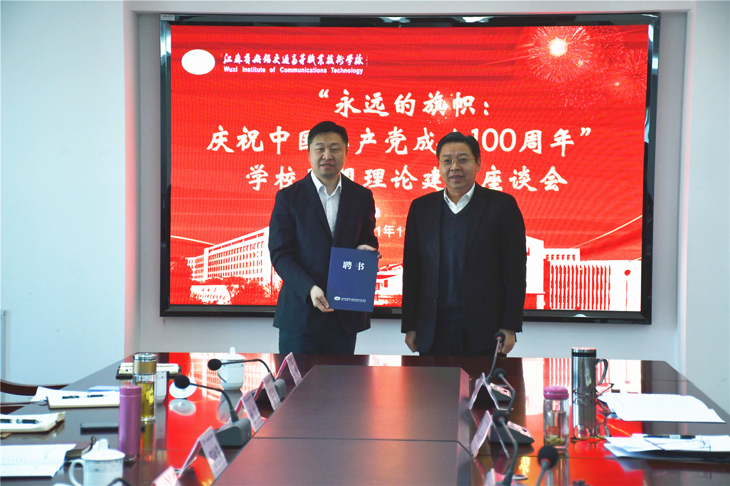 11月12日,根据党史学习教育的安排,学校召开“永远的旗帜:庆祝中国共产党成立100周年”思想理论建设座谈会。会议特别邀请了学校马克思主义学院客座教授、中共无锡市委讲师团团长王铭涛出席会议并讲话。全体校领导出席了座谈会。座谈会由学校党委副书记朱雨兰主持。