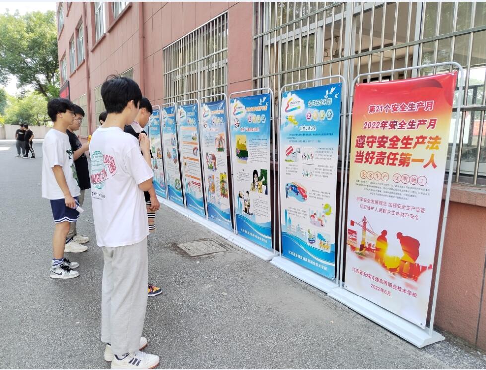 2022年6月是全国第21个,无锡市第29个“安全生产月”。学校在即将放暑假之际利用“安全生产月”宣传教育契机,围绕交通安全、消防安全、防溺水、防灾减灾、公共安全、应急避险、应急救护、警示标语等多个安全教育主题,制作了一批安全知识展板,展板力求图文并茂,安全知识要点清晰,最大程度的起到宣传一批安全知识,教育全校师生,提升学校全员安全意识的目的。