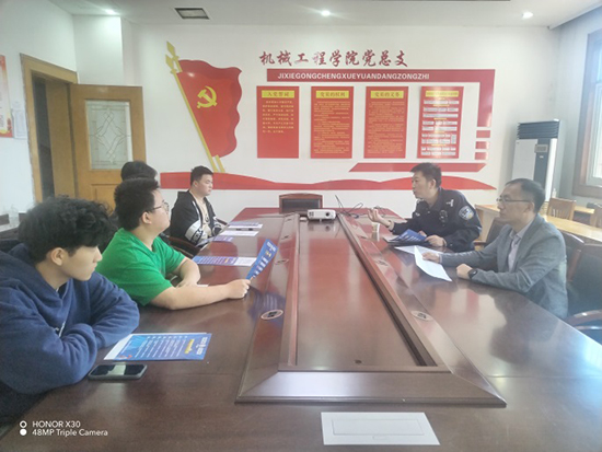2023年10月20日,锡澄校区辖区刘潭派出所警官廖警官为了进一步提高广大学生对网络诈骗的防范性,对校区多名个人信息有泄露风险的学生开展防范网络电信诈骗辅导。校区办主任褚晓林参加了本次对学生的反诈辅导。