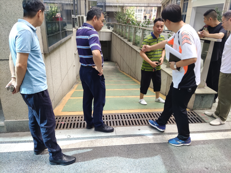检查组一行人对南校园励志楼地下斜坡雨沟疏通情况、教室各宿舍门窗关闭情况、地面井盖、排水沟及地下室排水泵工作情况进行检查。对检查出的问题现场沟通解决方案,明确整改措施和责任人,并要求立即整改到位。