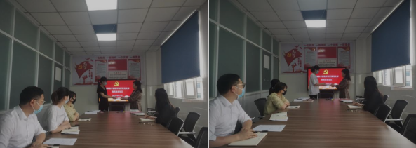 党支部书记杭红霞与党支部全体党员就党风廉政建设主题开展廉政谈话,并讲授了廉政专题党课。