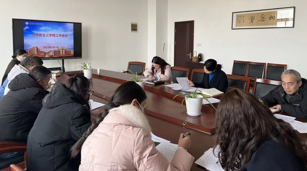杨书记领学了《江苏省交通运输厅2023年职业教育工作要点》《江苏联合职业技术学院2023年工作要点》和《中共江苏联合职业技术学院党委关于加快构建思想政治工作体系的实施意见》等文件精神,并组织了全体马院教师就2023年马院工作计划开展研讨。