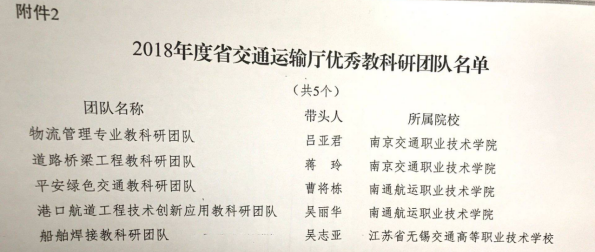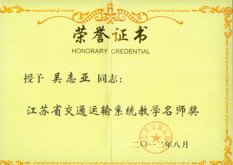 吴志亚,中共党员,教授,电焊工高级技师、高级考证员,江苏省“333工程”培养对象、江苏省交通运输系统100人才、江苏省高校“青蓝工程”优秀青年骨干教师、江苏省交通系统教学名师、江苏交通运输系统优秀教科研团队带头人、总院专业带头人、省实训基地负责人、江苏交通运输系统大师工作室负责人、无锡市名师工作室负责人、无锡市技能大师工作室负责人