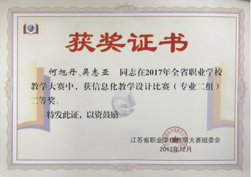 江苏省职业学校教学大赛信息化实训教学比赛三等奖