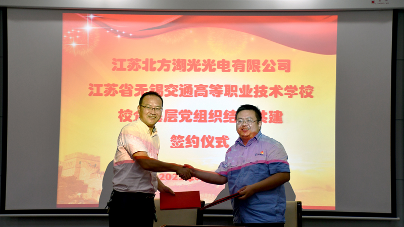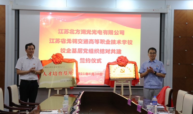 2021年6月30日,机电工程学院党总支与江苏北方湖光光电有限公司人力资源党支部,举行党建结对共建签约仪式,副校长耿兴华、湖光光电公司纪委书记王亚军,以及机电工程学院党总支党员代表、湖光光电有限公司人力资源党支部党员代表共同出席仪式。