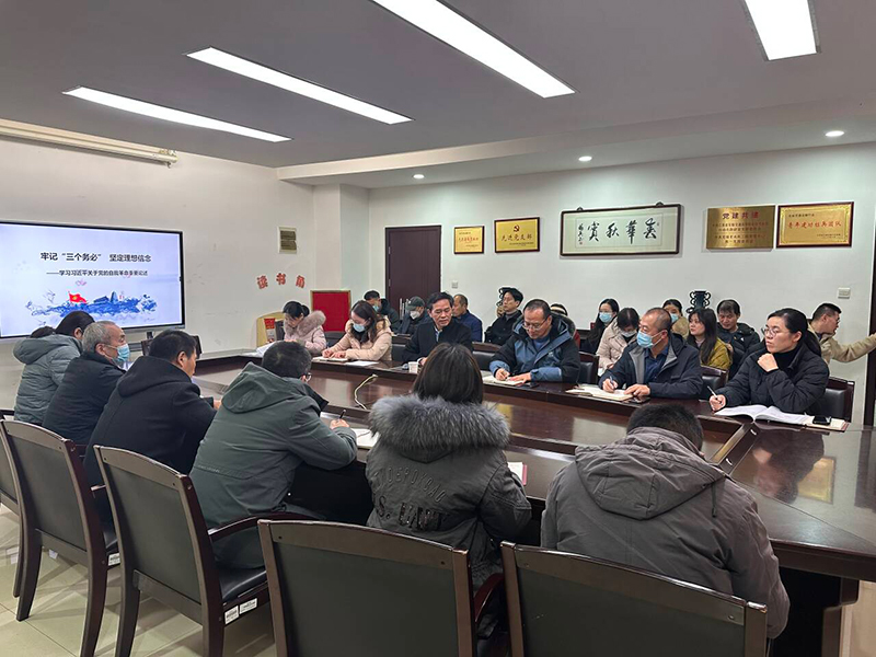 12月15日下午,为深入学习贯彻习近平新时代中国特色社会主义思想和党的二十大精神,推进主题教育走深走实,学校党委委员、副校长耿兴华以《牢记“三个务必”,坚定理想信念》为题,在机电工程学院会议室讲授主题教育专题党课。机电工程学院党总支全体党员参加党课学习。