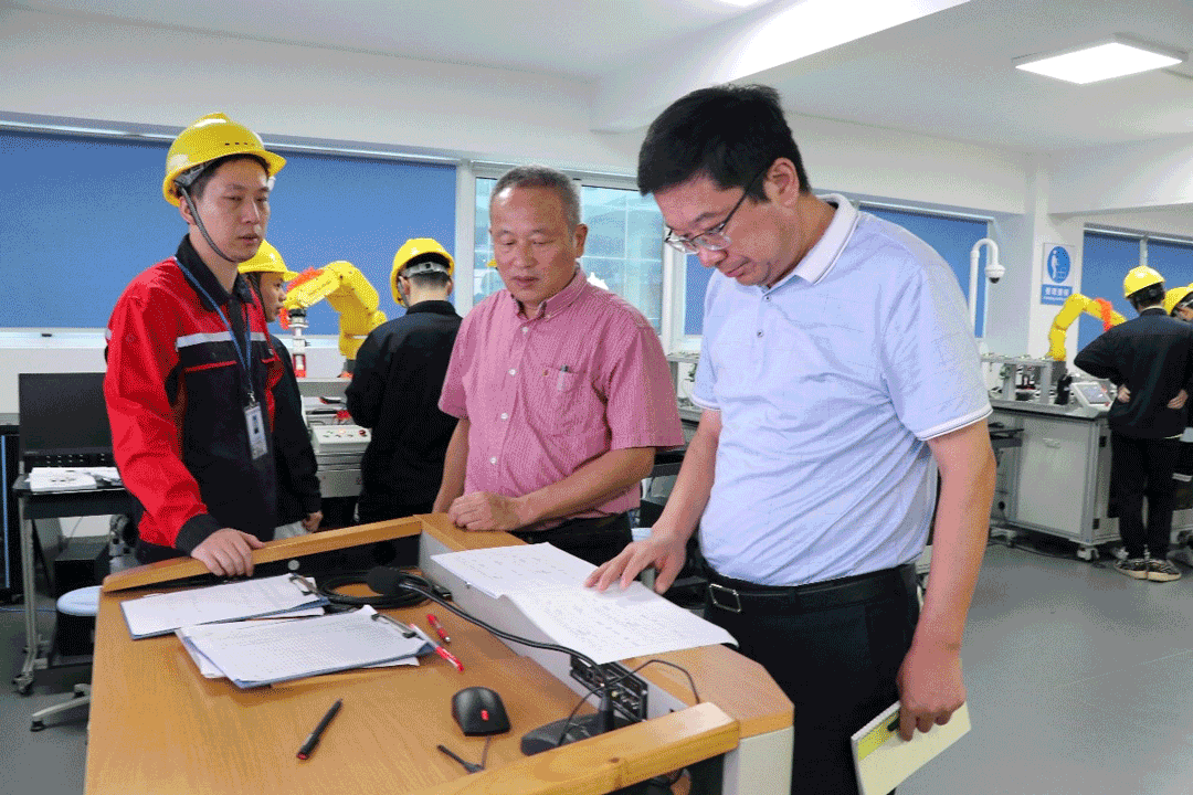 9月22日上午,五年制高职人才培养工作水平评估专家组对交通装备工业机器人实训基地进行了现场考察。