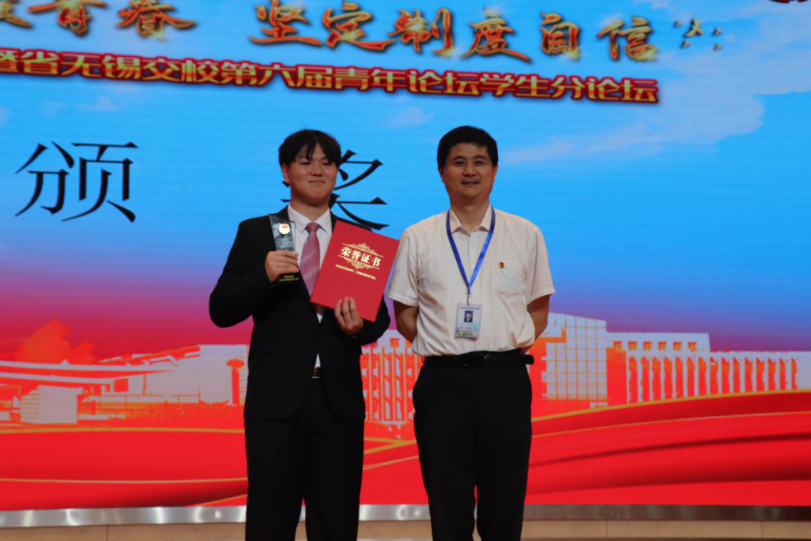 6月3日下午15:00,在校大礼堂举行了“绽放战役青春 坚定制度自信”主题团日活动暨生无锡交校第六届青年论坛(学生组)。我院171321班陈仕杰和171322班孙梓源两名同学参加了此次论坛。