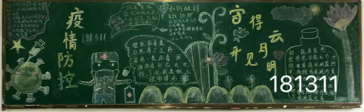 为全面打赢新冠肺炎疫情阻击战,做好抗疫知识宣传,5月13日,机电工程学院举办了以“绽放战疫青春,坚定制度自信”为主题的黑板报评比活动,此次活动共有18个班级参加。