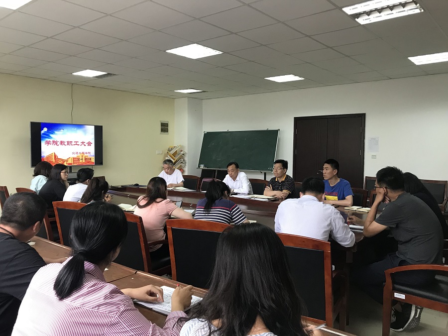 5月26日下午,交通工程学院在104会议室召开全院教职工大会,会议传达学习了相关文件精神。会议由交通工程学院党总支徐建新书记主持。