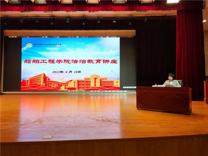 为增强学生的安全意识,提高自我保护能力,创建平安校园,4月28日,船舶工程学院在学校大礼堂举办了“从偶发性人身伤害案件谈青少年自制力的养成”安全法治教育讲座。主讲人为市中级人民法院关工委副主任、市关工委法治宣传教育报告团成员华俭学,学院全体师生参加讲座,讲座由船舶工程学院吴志亚院长主持。