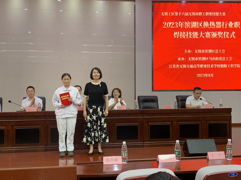 8月17日,由无锡市滨湖区总工会、无锡市滨湖区马山街道总工会联合举办,学校承办的2023年滨湖区换热器行业职工焊接技能大赛颁奖仪式在马山街道报告厅举行。无锡市总工会劳动和经济工作部部长刘国伟、滨湖区总工会党组书记、副主席曹洪达、滨湖区总工会副主席彭光耀、度假区党群工作部部长高祥生、必一体育·(中国)官方网站党委副书记、五级职员朱雨兰、马山先进制造业基地党委书记张文伟出席本次颁奖仪式。滨湖区总工会相关科室,必一体育·(中国)官方网站船舶工程学院相关负责人,马山先进制造业基地分管负责人和换热器企业工会负责人,以及所有参赛选手参加活动。颁奖仪式由度假区党群工作部副部长、马山街道总工会主席吴军涛主持。