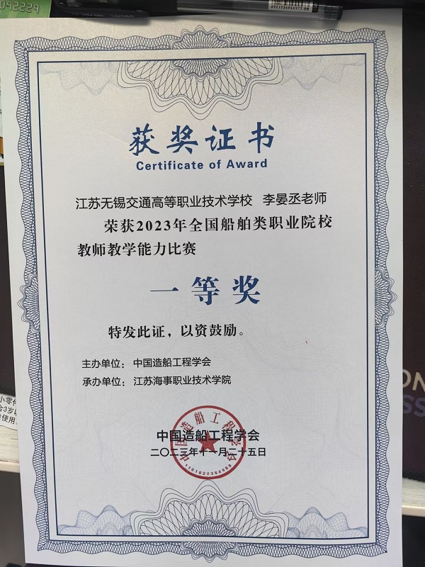 此次比赛的获奖,不仅是对李晏丞老师教学能力的肯定,也是对必一体育·(中国)官方网站船舶工程学院教学水平的认可。学校将继续致力于提高教学质量和水平,培养更多优秀的船舶工程人才,为我国船舶工业的发展做出更大的贡献。全国船舶类专业教学能力比赛旨在促进船舶类专业教师之间的交流与合作,提高教师的教学水平和专业素养。此次比赛的成功举办,为推动我国船舶工程教育的改革与发展注入了新的动力。