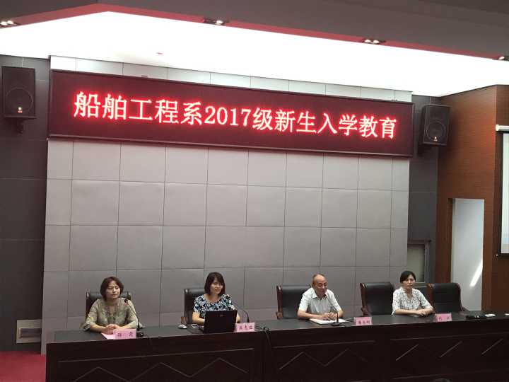 新的学期,开启新的希望! 新的空白,承载新的梦想!船舶工程系于9月15日下午在学术报告厅召开2017级新生入学教育大会。船舶工程系主任唐永刚教授、党支部书记吴志亚副教授、副主任刘方老师及辅导员、教学秘书、新生班主任参加大会。大会由团总支书记孙霞主持。