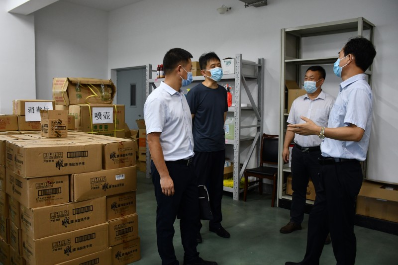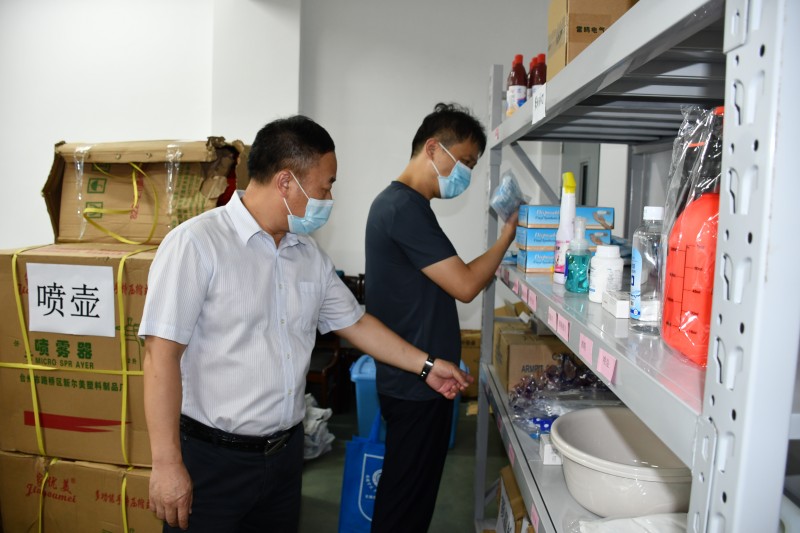孔组长一行在学校副校长耿兴华的陪同下,实地查看了学校疫情防控工作,现场调研了学校疫情防控物资仓库,翻阅了《必一体育·(中国)官方网站新型冠状病毒感染的肺炎疫情防控工作方案》《学校疫情防控期间校园通风消毒及卫生工作实施方案的通知》等文件和制度。