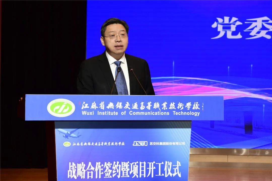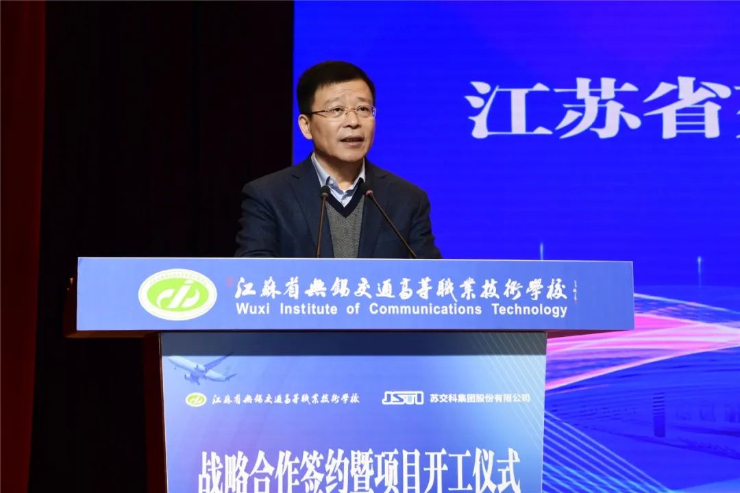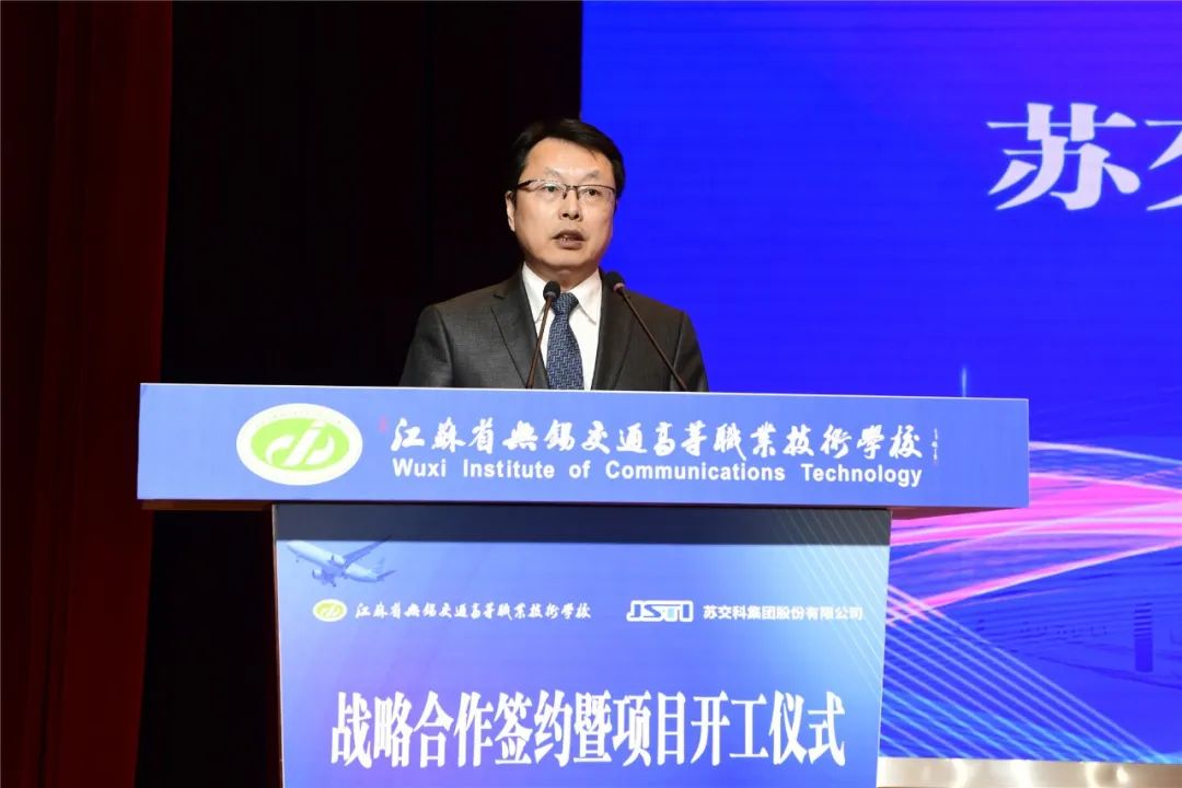 金凌副厅长在讲话中指出,生产性交通工程试验检测中心的共建,是无锡交校和苏交科集团共同落实国家和省相关政策的坚实举措和实际行动。近年来,无锡交校以产教融合协同育人为主线,以“四学院三中心”为载体,以“三教改革”为抓手,聚焦现代交通运输体系和社会经济转型发展,着力提升五年制高职人才培养质量,实现了专业结构与交通行业、区域经济、企业需求深度融合,提升了学校服务交通运输现代化建设的能力。苏交科集团拥有工程行业各领域最高等级资质,是国内基础设施领域咨询行业龙头企业、工程咨询行业首家上市公司,2022年,获得省政府颁发的“江苏省省长质量奖”,是设置奖项以来江苏省交通领域第一家获此殊荣的企业。这些发展成就为校企双方进一步高质量协同发展奠定了坚实的基础。此次共建,是无锡交校和苏交科集团共同落实国家和省相关政策的坚实举措和实际行动。他对共建生产性交通工程试验检测中心提出三点希望:要聚合校企力量,打造校企合作典范。要聚焦人才培养,满足行业技能人才需求。要聚力行业发展,服务交通运输事业。