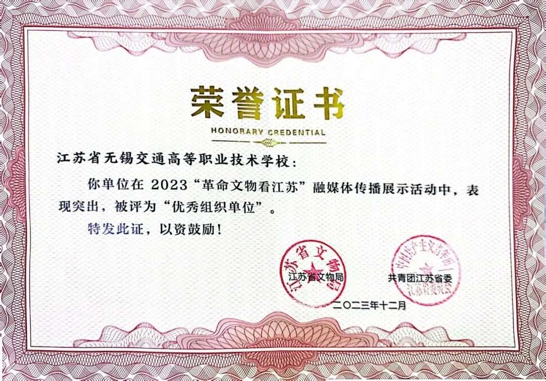 为进一步贯彻落实习近平总书记关于革命文物工作重要指示精神,充分挖掘革命文物的丰富精神内涵,1月12日,2023“革命文物看江苏”融媒体传播集中展示活动在南京荔枝大剧院举行。省委宣传部常务副部长梁勇,省文化和旅游厅党组书记、厅长杨志纯,省广播电视总台党委书记、台长葛莱,省文化和旅游厅副厅长兼省文物局局长,南京博物院党委书记拾峰,共青团江苏省委副书记张永意以及中国江苏网、扬子晚报等单位负责同志出席活动。学校荣获优秀组织单位奖,学校党委委员、副校长范次猛现场参加活动并代表学校上台领奖。