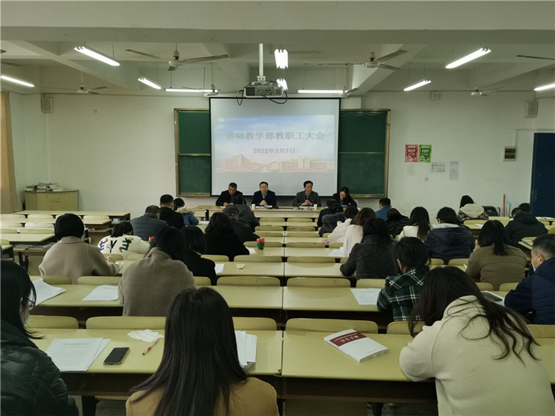 3月7日下午,基础教学部在弘毅楼508教室召开部门教职工大会。学校党委书记、校长李虎,校党委委员、副校长耿兴华出席会议,会议由基础教学部主任陈建明主持。