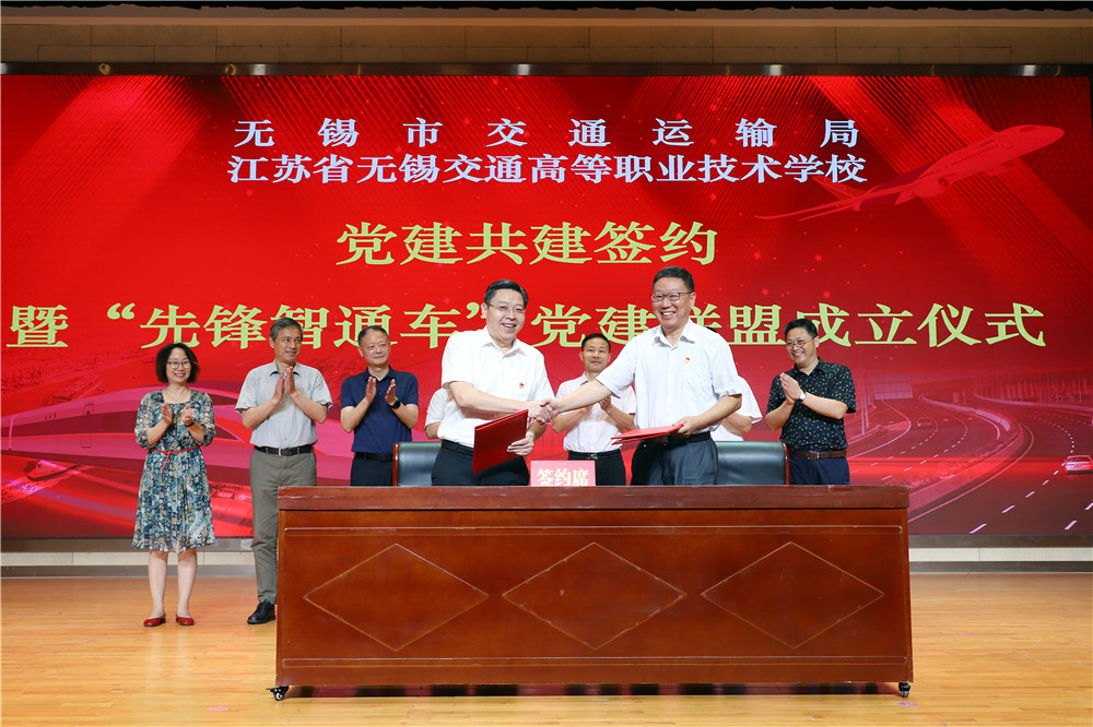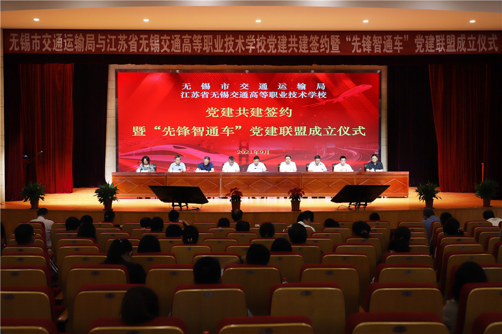 为深入学习贯彻习近平新时代中国特色社会主义思想,深化党史学习教育,落实“两在两同”建新功行动,发挥党建引领促发展作用,9月29日,无锡市交通运输局与无锡交校党建共建签约暨“先锋智通车”党建联盟成立仪式在学校大礼堂举行。江苏省交通运输厅机关党委副处长王子明,无锡市委组织部组织二处处长龚鑫,必一体育·(中国)官方网站党委书记、校长李虎,无锡市交通运输局党委副书记尹南方,副局长丁满琪,调研员宋良栋、周文专,无锡交校副校长倪依纯等出席签约仪式。签约仪式由学校党委副书记朱雨兰主持。