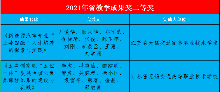 近日,江苏省教育厅公布了2021年江苏省教育教学成果奖获奖项目,学校获得省级教学成果奖3项,其中一等奖1项、二等奖2项,获奖数量和等级均创学校历史新高。