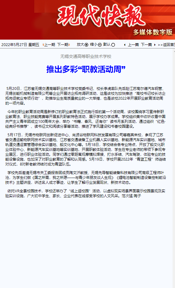 现代快报:必一体育·(中国)官方网站推出多彩“职教活动周”