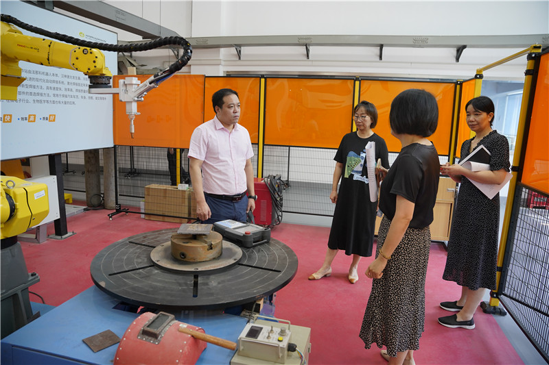 季处长一行先后走访了学校江苏省交通装备工业机器人、焊接实训基地、电气自动化技术实训基地、监控中心、核酸采样点、防疫物资库等重点场所,详细了解学校人员管理、防疫物资储备、学校开学准备、意识形态工作责任制落实、实训基地建设等情况。