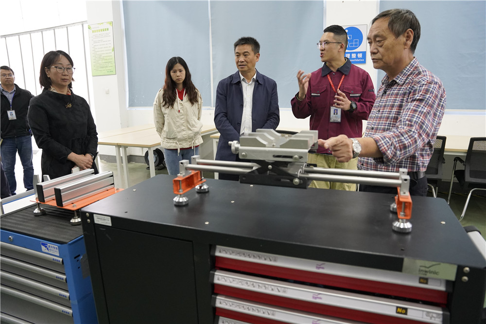 考察组一行还实地考察了工业机器人实训基地、交通运输物联网技术实训基地、新能源汽车实训基地、江苏省交通运输行业船文化中心、校园书店、校史馆等校内实训基地和场所,对学校专业文化、校史校情教育、文化活动开展等情况予以赞赏。