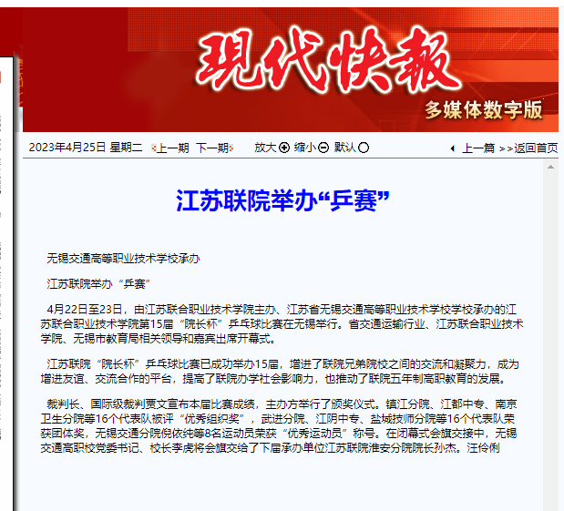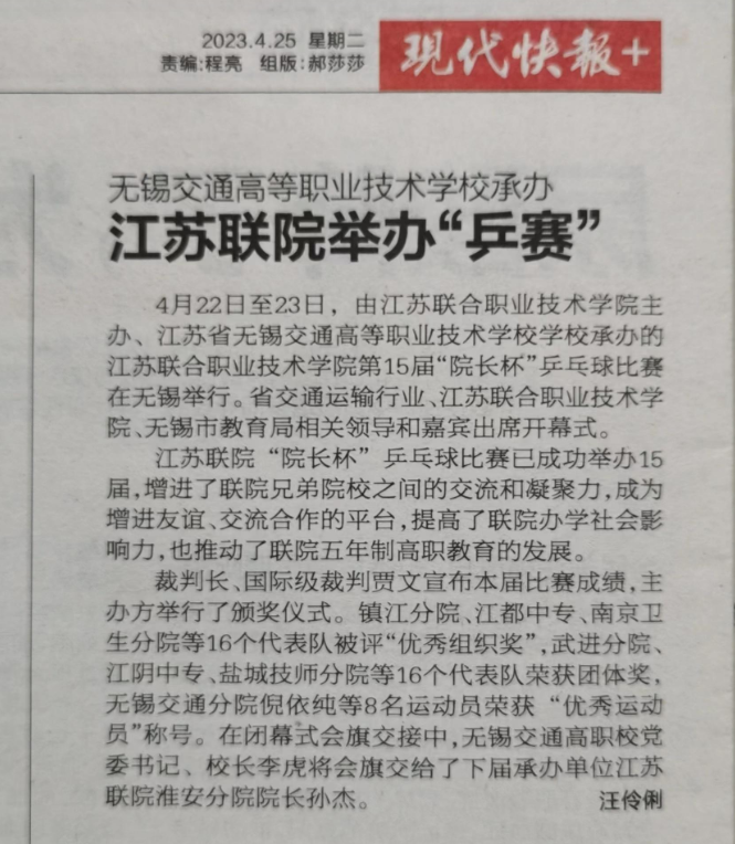 今日头条:江苏联合职院在无锡举办第15届“乒赛”,无锡交通高职校承办