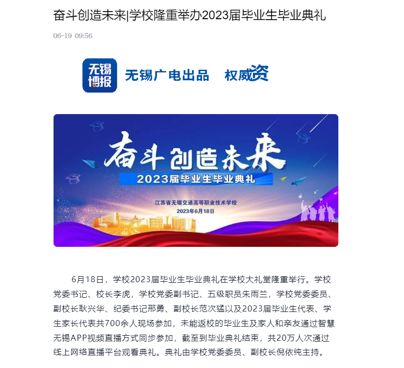 无锡博报:奋斗创造未来|学校隆重举办2023届毕业生毕业典礼