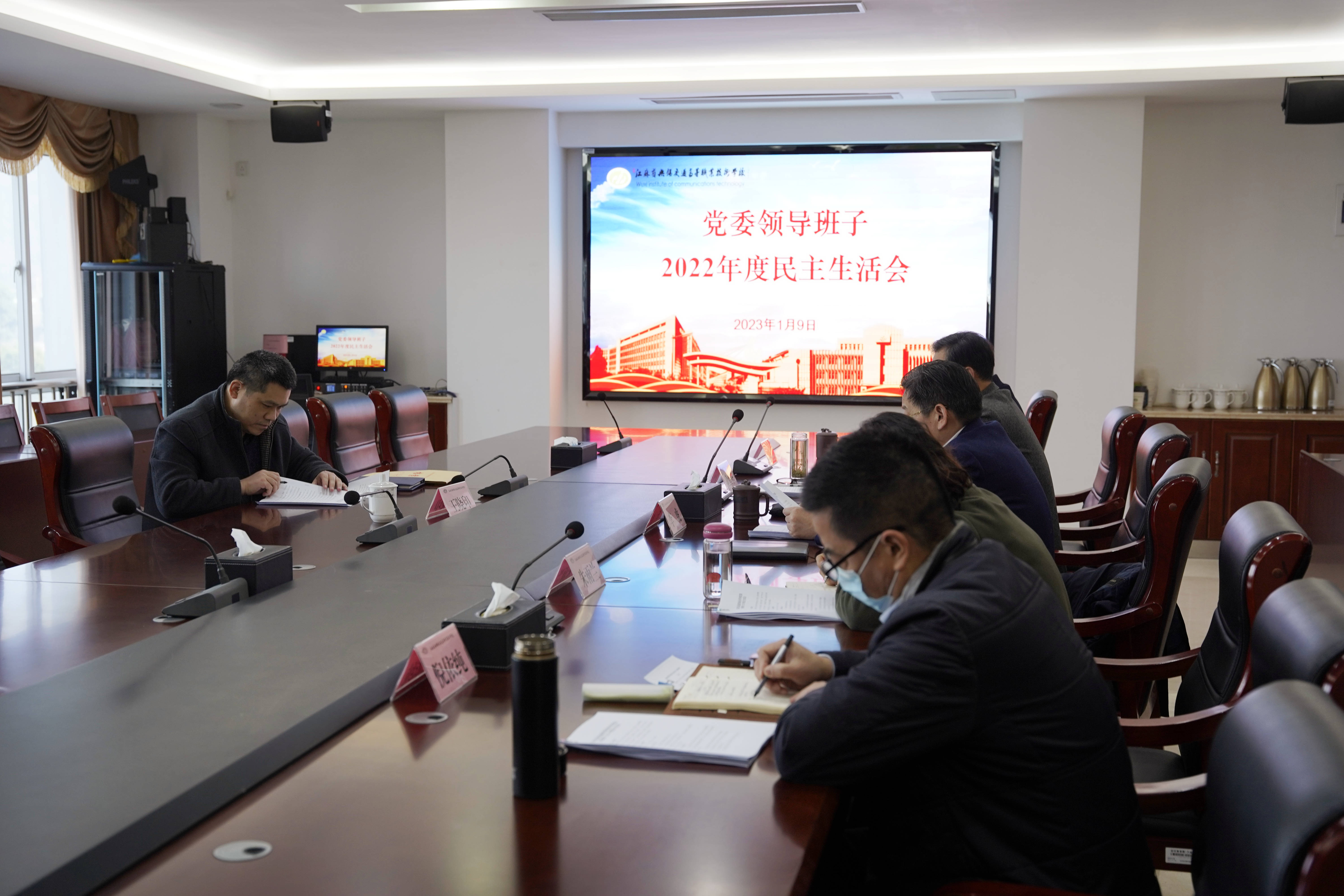1月9日下午,学校召开2022年党委领导班子民主生活会,会议以“全面贯彻习近平新时代中国特色社会主义思想,深刻领悟‘两个确立’的决定性意义,增强‘四个意识’、坚定‘四个自信’、做到‘两个维护’,团结带领党员干部以奋发有为的精神贯彻落实党的二十大作出的重大决策部署”为主题,联系工作实际,深入查摆问题,剖析问题根源,开展批评和自我批评。校党委书记、校长李虎主持会议,省交通运输厅政治处三级主任科员王晓印到会指导,校党政办公室、组织人事处、纪委办公室等处室负责人列席会议。