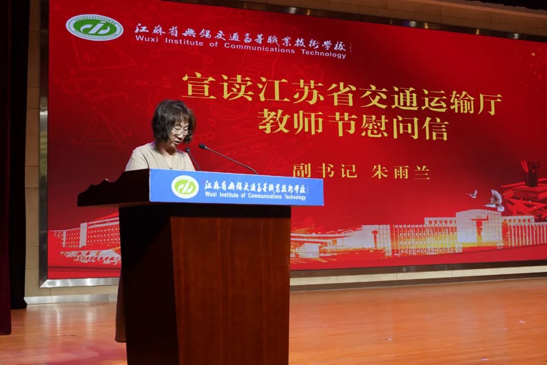 会上,校领导宣读了江苏省交通运输厅第39个教师节慰问信,向在岗位上辛勤耕耘30年的教师颁发证书。现场表彰了学校第五届“最美教师”,为获得全国职业院校技能竞赛奖项的选手颁奖。同时,举行新入职教师宣誓的仪式,并为退休教师代表献花。