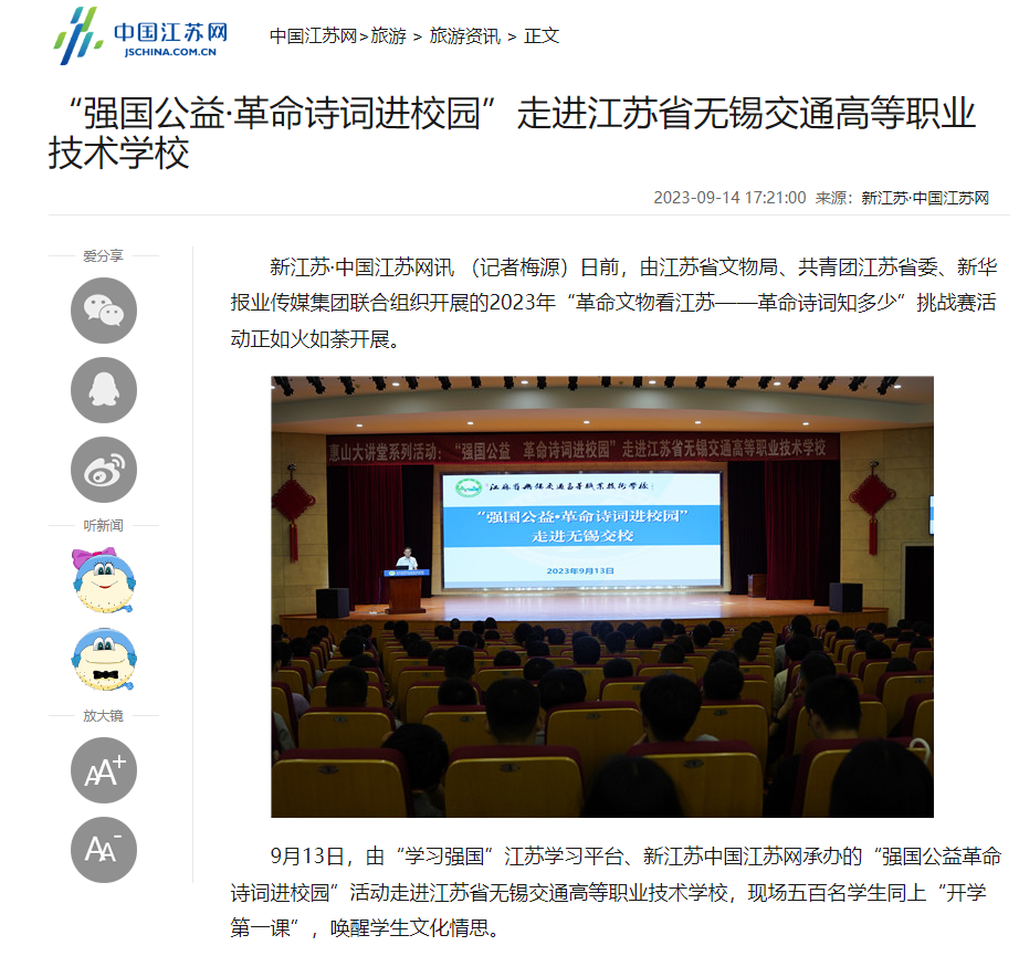 新江苏:“强国公益·革命诗词进校园”走进必一体育·(中国)官方网站