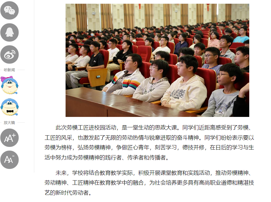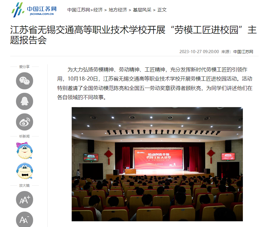 中江网:必一体育·(中国)官方网站开展“劳模工匠进校园”主题报告会