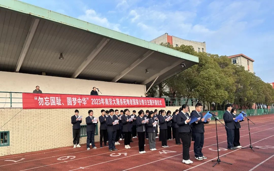 12月13日,学校纪念“南京大屠杀死难者国家公祭日”主题升旗仪式在学校操场举行。校党委委员、副校长范次猛出席并发表讲话,全校师生代表1500余人参加了升旗仪式。