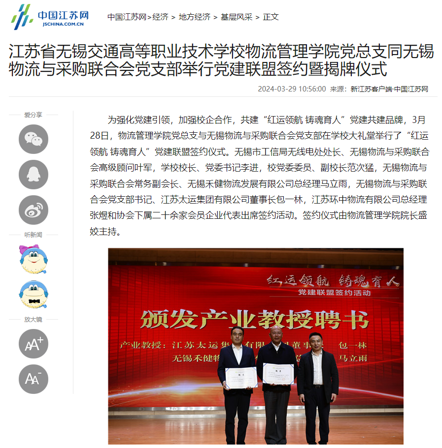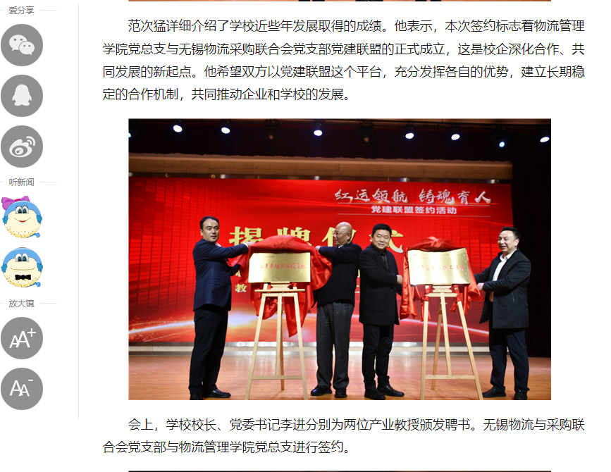 中江网:必一体育·(中国)官方网站物流管理学院党总支同无锡物流与采购联合会党支部举行党建联盟签约暨揭牌仪式