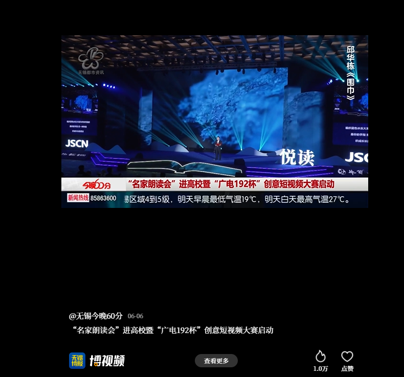 无锡博报:“名家朗读会”进高校暨“广电192杯”创意短视频大赛启动