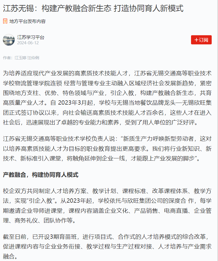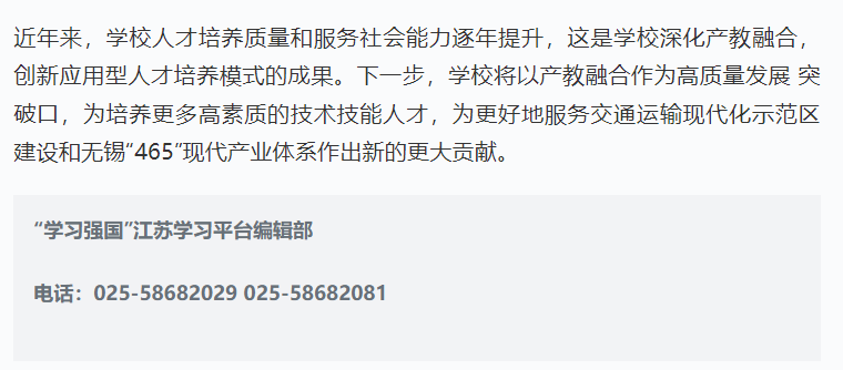 学习强国:江苏无锡:构建产教融合新生态 打造协同育人新模式