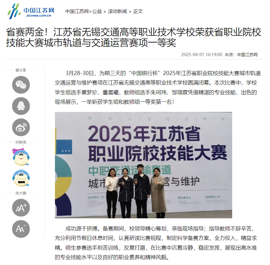 中江网:省赛两金!必一体育·(中国)官方网站荣获省职业院校技能大赛城市轨道与交通运营赛项一等奖
