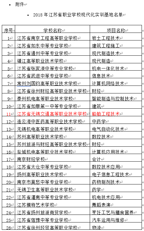 • 1.2018年江苏省职业学校现代化实训基地名单