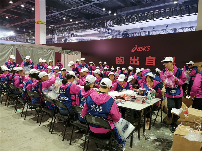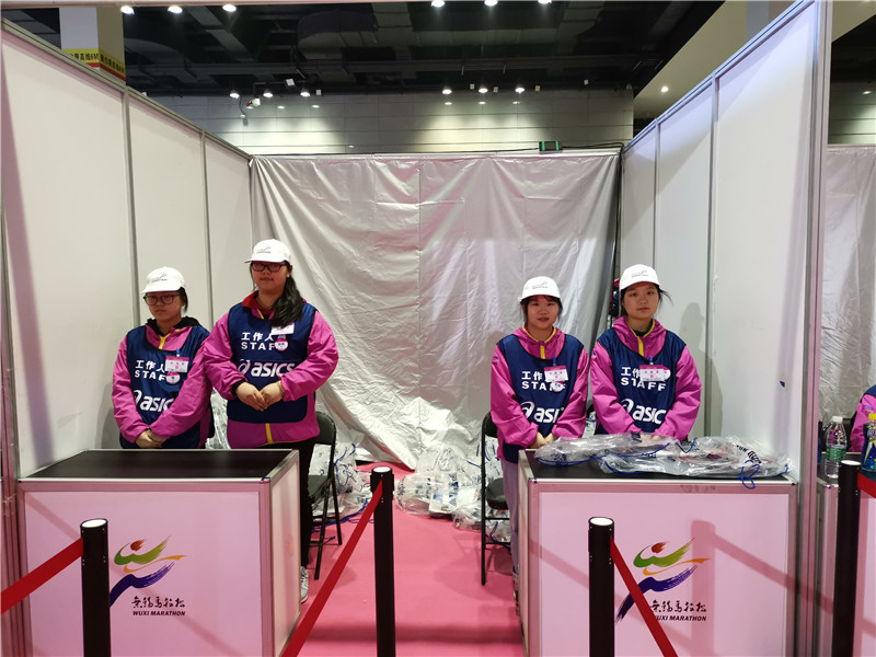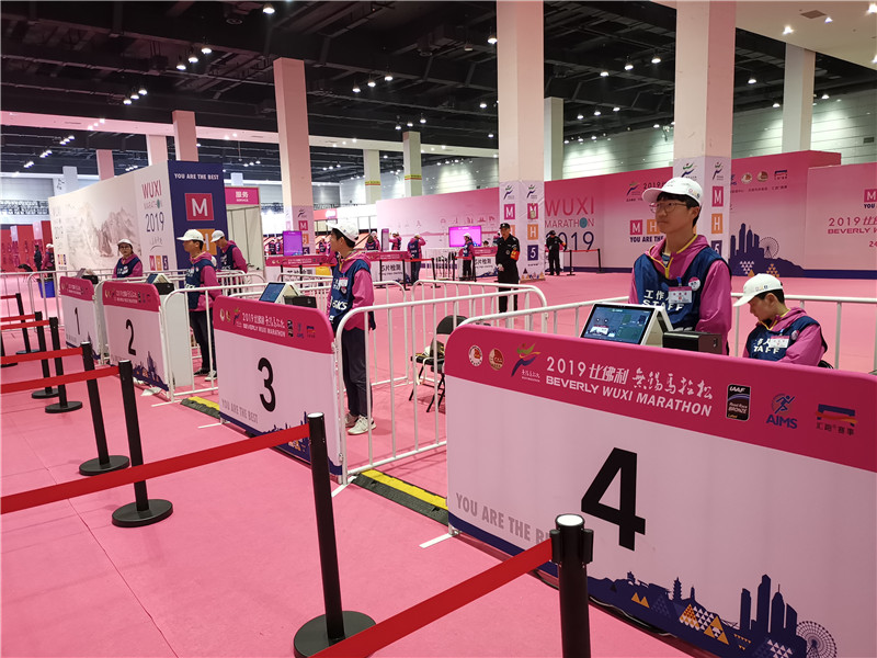 3月21日至23日,我校共组织350名师生志愿者在号码布发放、存衣包发放、整理、赛事纪念T恤发放、人脸识别系统入场引导、检录、芯片检测服务、现场秩序管理、画面讲解、摆渡车等14个岗位首次采用流水线式赛前物资发放模式做好赛前志愿服务工作,为2019无锡马拉松保驾护航。
