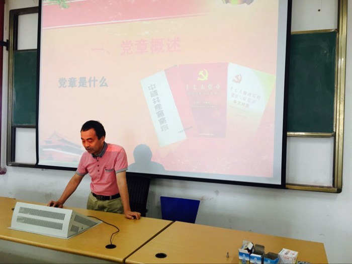 为贯彻落实《校党委关于做当前“两学一做”学习教育工作的通知》精神,积极推进基础部党支部“两学一做”学习教育的深入开展, 2016年6月15日基础部全体党员在阶梯教室506,认真开展了《中国共产党党章》的党课学习。支部委员闻惠中带领大家学习了《中国共产党党章》。