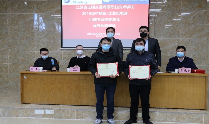 为进一步开展好德国手工业行会工业机电师培养项目,不断总结经验和成果,激励同学们将更多的精力投入到项目学习中,机电工程学院与德国手工业行会中国项目办于2022年12月14日下午,在锡澄校区举行了2019级工业机电师中期考试颁奖典礼。学校党委委员、副校长耿兴华,德国手工业行会中国项目办总负责人邓珂博士、机电工程学院院长夏春荣、德国手工业行会教官Andreas Meyer、学院优秀教师、家长代表、全体2019级中德班学生等参加了本次颁奖典礼,会议由机电工程学院副院长俞浩主持。
