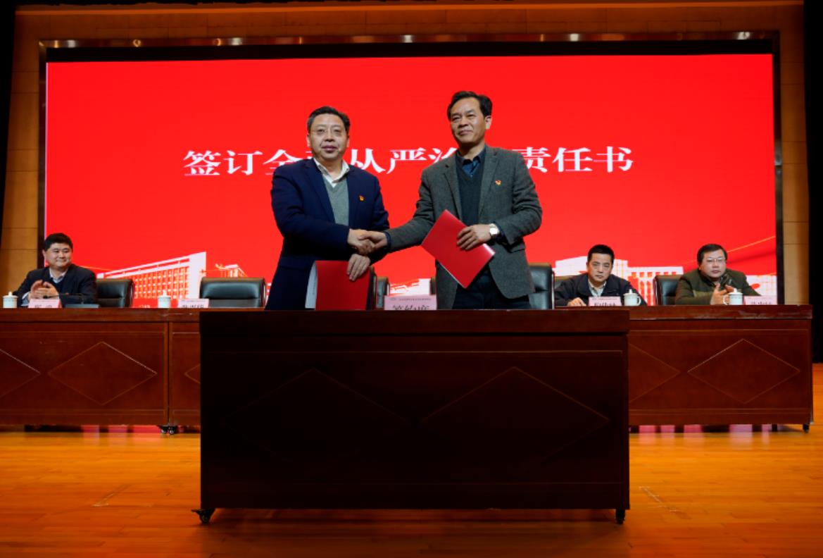 会上,学校纪委书记邢勇作题为《忠诚履职尽责 建设廉洁校园 为学校高质量发展提供坚强政治保证》的工作报告。集中观看了警示教育专题片《别让“自作聪明”毁了人生》。校党委书记李虎与党委委员签订了2022年全面从严治党责任书。