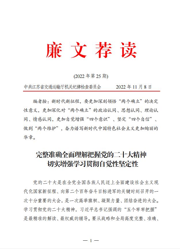 2022年廉文荐读第25期——完整准确全面理解把握党的二十大精神